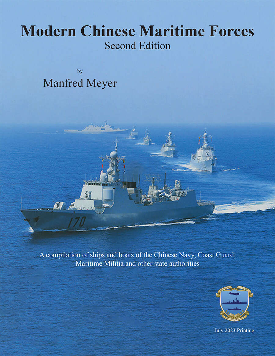 - Fuerzas Marítimas Chinas Modernas, segunda edición, es un libro de referencia naval de Manfred Meyer. Proporciona información actualizada al minuto sobre el poder marítimo chino. Enumera todos los buques al servicio del gobierno chino, no solo la Armada del Ejército Popular de Liberación, sino también la Guardia Costera, la Vigilancia Marítima de China, el Comando de Aplicación de la Ley Pesquera de China, la Milicia Marítima y muchas otras agencias controladas por el estado que llevan a cabo la política de China en el mar. Esta segunda edición agrega nuevas secciones que cubren los barcos y embarcaciones utilizados por las Fuerzas Terrestres del EPL y la Fuerza Aérea del EPL. Ha crecido en casi 40 páginas desde que se publicó la primera edición en 2018.